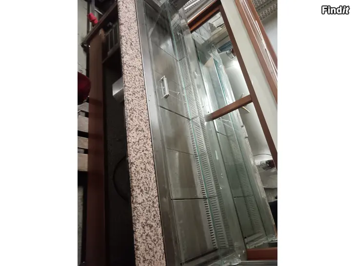Brädden 210cm, djup 90cm hög 150 cm. Höij och sänkbart glas över. Maten, marmor skivor, tel 0400767223