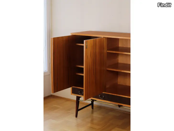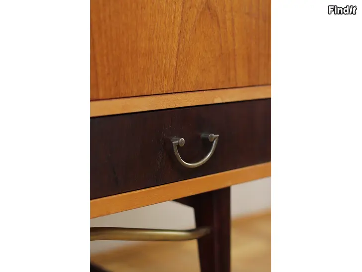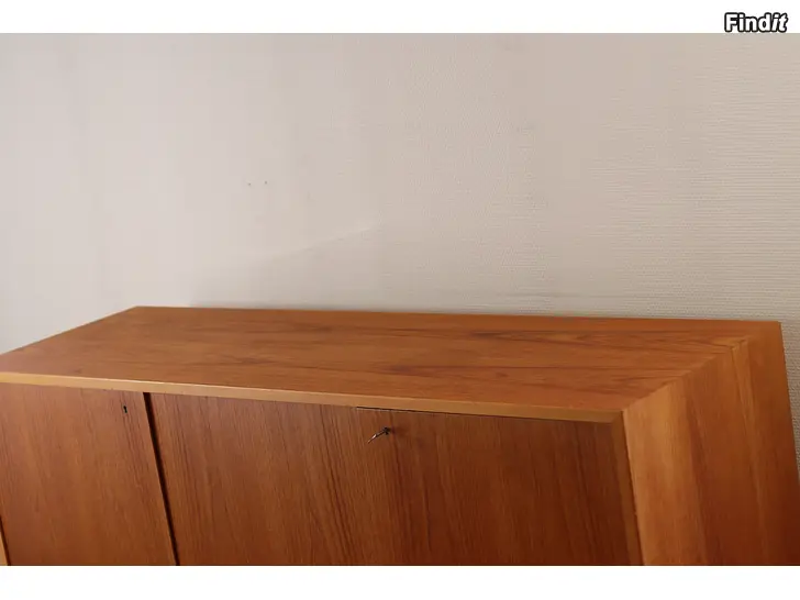 Myydään ruotsalainen Oscar Edv. Ekelunds Snickerifabriks Ab Virserum, 1960-luvun teak sideboard senkki. Senkki on erinomaisessa kunnossa ja hoidettu. Vetolaatikot ja sädettävät hyllytasot. Avain on tallessa. Mustat laatikot ja messinkiputki on alhaalla.