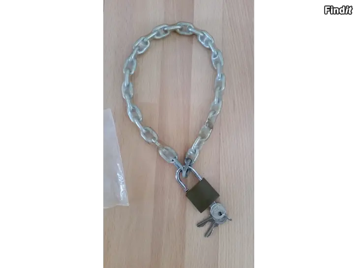 Muovipäällysteinen kettinki pituus 59cm. Ketjun paksuus 5mm. Lukkoketju ketjulukko
