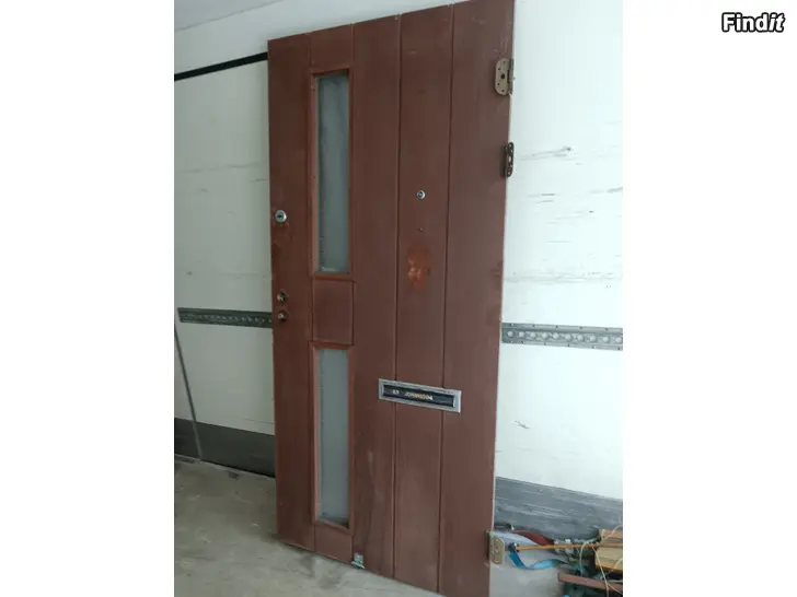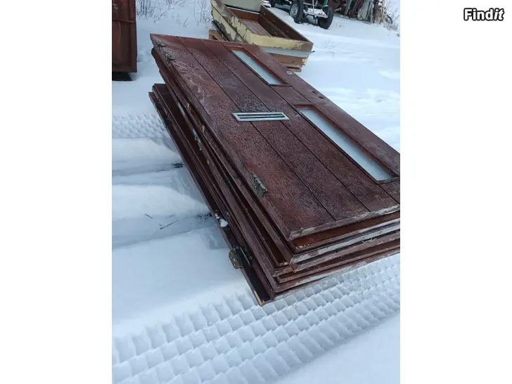 Finns flera stycken ytterdörrar till salu som blivit utbytta på ett radhus,, tyvärr fattas karmarna åt samtliga men gångjärn och låskista borde finnas på dom flesta dörrar,, men karmarna måste ni snickra till själva, Pris 50e / st,, tel 0400767223
