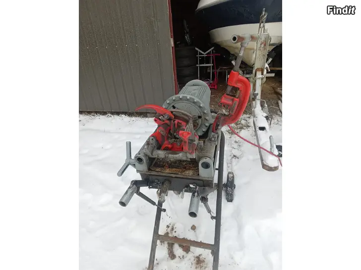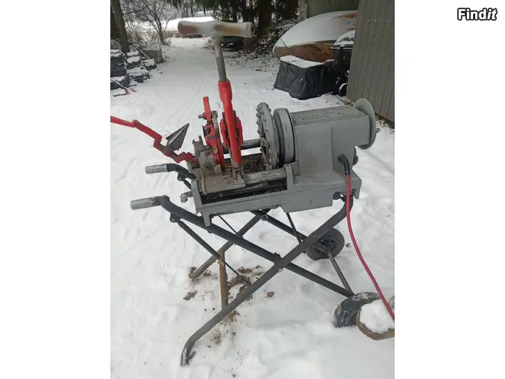 Ridgid 300 Kompakti kierteityskone jalustalla, jossa on 1-2 tuuman kierteityskärjet.