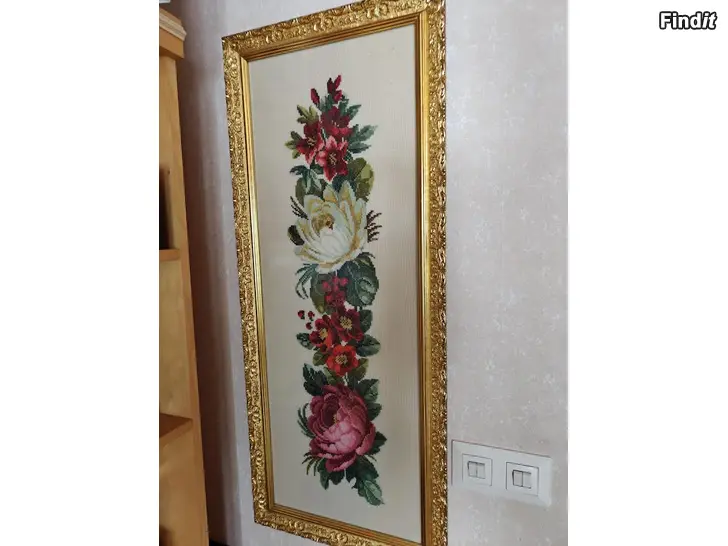 Fint Korsstygns-Broderi. Stor talva med Rosor