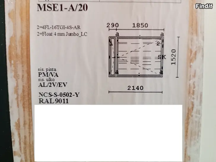 Fönster MSEA 130, 2140x1520, Vit/Svart, B-MODELL