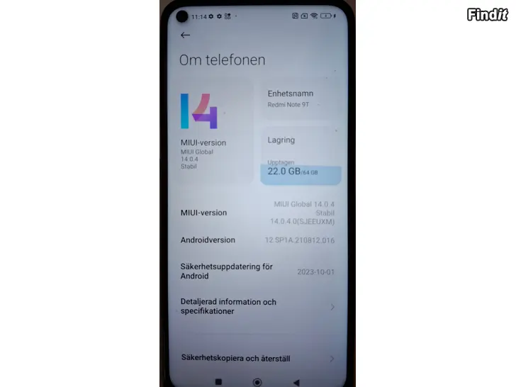 Mobiltelefon Redmi Note 9T 64Gb lagring