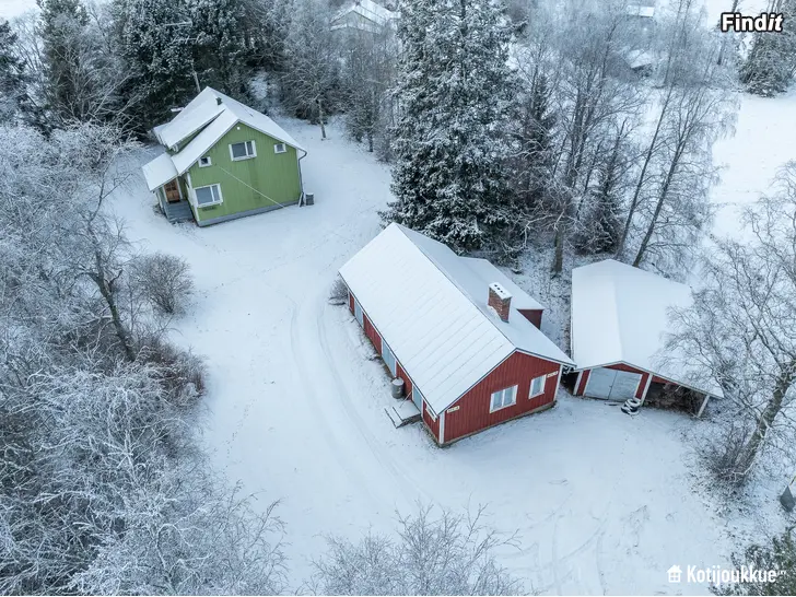 Kodin paras puoli on kuitenkin oma 1,7356 ha tontti, jonka iso vehreä pihapiiri istutuksineen houkuttelee viherpeukalon puuhastelemaan ja pihalla on hyvät puitteet viettää kesäpäivä, niin oman perheen kuin ystävienkin parissa. Pihapiiristä löydät lisäksi talousrakennuksen, joka taipuu moneen eri käyttötarkoitukseen. Toisesta rakennuksesta löytyy myös puulämmitteinen pihasauna jonka voit kunnostaa uuteen käyttökuntoon. Mikä onkaan ihanampaa kuin rauhoittua saunanlämmitykseen oman kaavan mukaan, saunoa yksin tai yhdessä sekä nauttia saunan jälkeisestä hyvästä olosta luonnon keskellä.