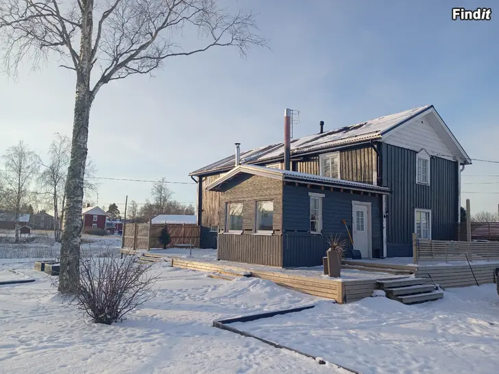 förnyats i hela huset. Vattenburen golvvärme på båda våningarna har installerats. Även