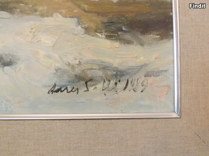 Öljyvärityö kankaalle maalattu, signeerattu ja päivätty 1998. Vaasalais syntyisen taiteilija Aares Sallin 1914- 2009 talvimaisema kooltaan 88x78 cm. Taiteilijasta löytyy lisää tietoa taiteilijamatrikkelista.