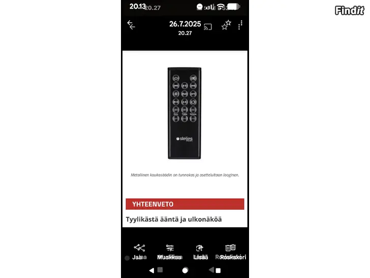 Findit ei vastaa ilmoitetusta tuotteesta tai ilmoituksen sisällöstä. SMS-viestien lähettäminen ilmoittajalle mainostarkoituksessa on kiellettyä. Ilmoittaja ei halua ilmoitus- ym. myyjien soittelevan. Jos sinulla on muuta kysyttävää tai mielipiteitä, ottakaa ystävällisesti yhteyttä asiakaspalveluumme.
