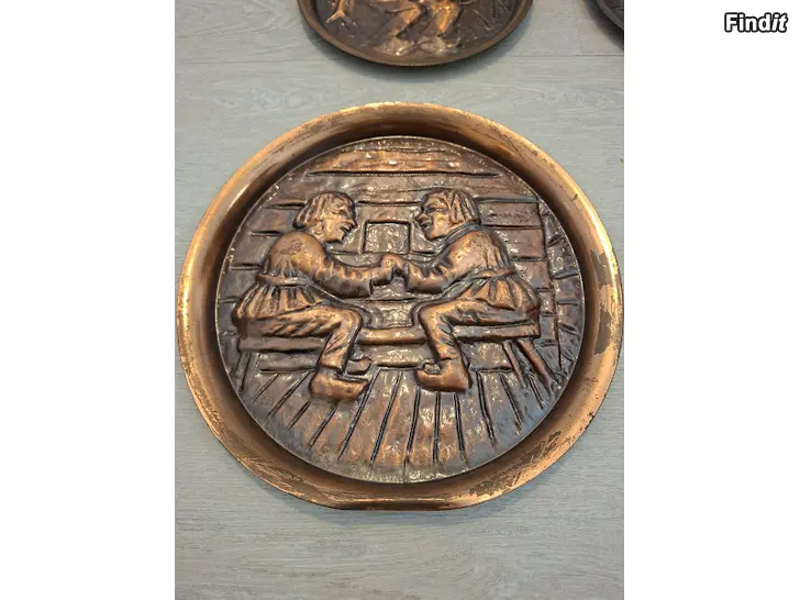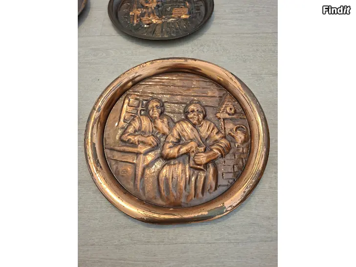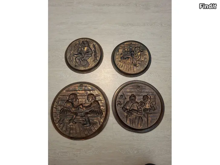 Myydään neljä perinteistä Painometallin leimattua kuparipakotuslautasta suomalaisista kansallisromanttisista aiheista. Kahdessa lautasessa pakotus paikoin läpi, mutta ei häiritsevästi. Lisäksi niissä on ajan tuomia kolhuja. Sijaitsevat Mustasaaressa. Yhteensä 15 euroa. Postit lisätään hintaan. MMM.