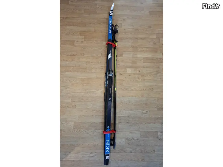 Säljes 165 cm långa Salomon skinnskidor eSkin samt 125 cm McKinley stavar. Endast några gånger använda, skick som motsvarar nya. NNN-bindningar.