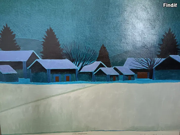 Myydään iso Juhani Palmun terragrafia taulu, Aihe Karjalasta taulun koko on n.86*109cm ja kuvan koko n. 70*90cm on paljon maalausta muistuttavan näköinen. Ostettu Alahärmästä Juhani Palmun Galleriasta.
