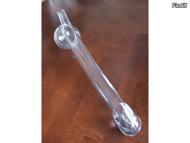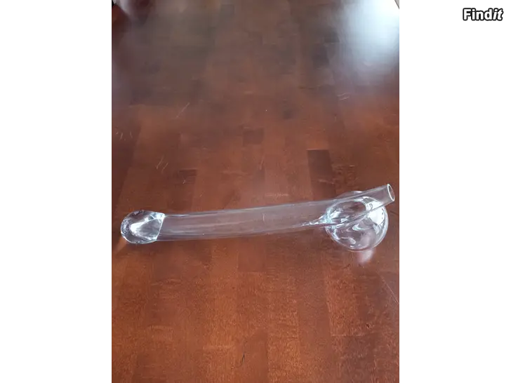 Myydään näyttävä lasinen, erikoinen koriste esine/karahvi. Esine on jo 50 vuotta vanha eli 70-luvulta. Esineen mitat on pituus n.41cm ja ympärysmitta n.15cm eli on kokoa ja näköä. Tästä nyt erikoinen ja hauska lahja ystävälle. Postitettaessa pakkaan esineen todella hyvin, myös nouto.