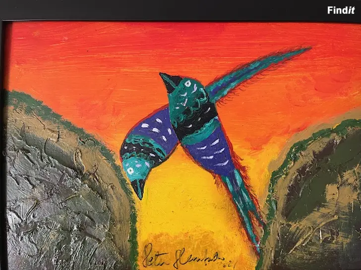 En vacker målning med motiv av fåglar. Olja på pannå, Höjd 23,5 cm Bredd 32,5 cm inkl. ran. Peter Glennfalk nr26