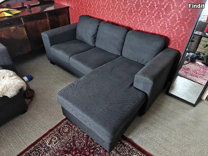 Siisti divaanisohva myynnissä. Kätisyys helposti vaidettavissa. Ulkoleveys n.206 cm. Kuljetus järjestyy tarvittaessa.