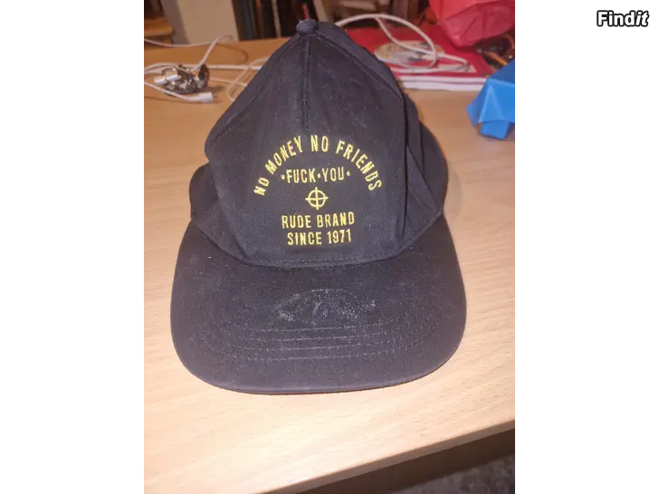 Svart keps från Rude Brand med gul brodyr framtill där det står No Money No Friends, Fuck You och Since 1971. Klassisk böjd skärm och justerbar passform. Perfekt för dig som vill ha en edgy och unik stil.
