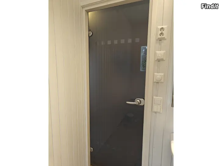 Lasiovi kosteaan tilaan, 8x21, 2010, painike ja saranat, karmi ei kuulu mukaan. Turvalasi 8mm, satin.