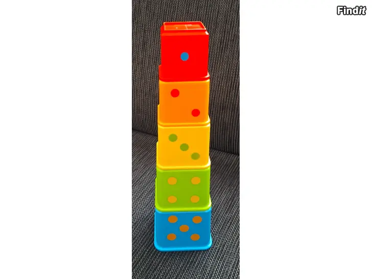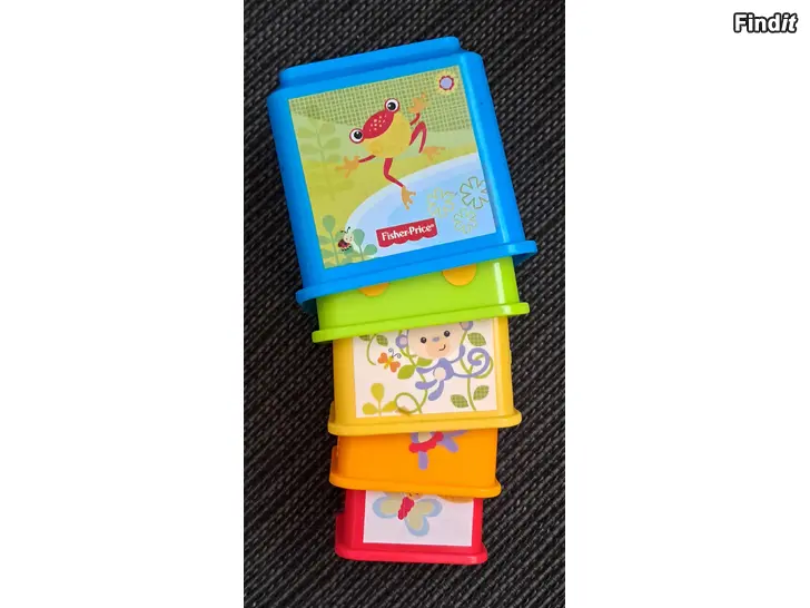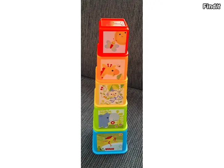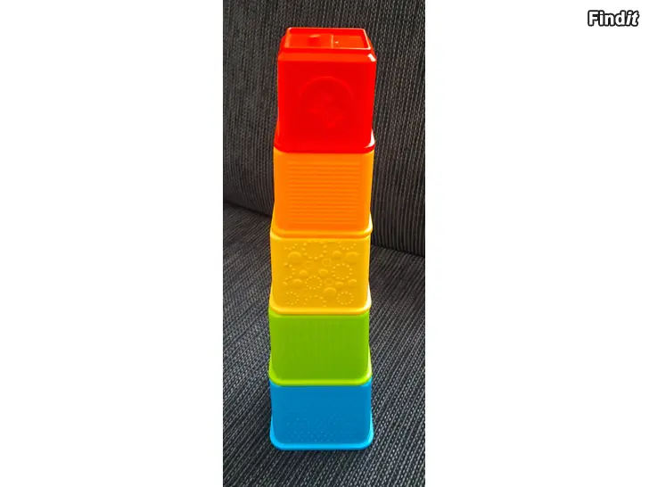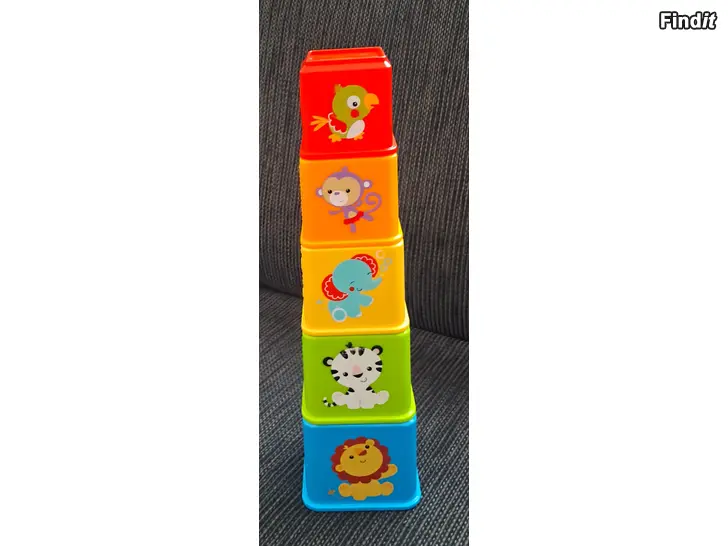Kuvan mukaiset Fisher Price pinottavat palikat.