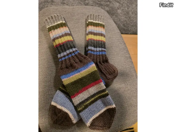 Jämälankasukat . Siististi tehty . Disäpuolella ei somuja hankaamassa . Langanyhdistelyt liitetty päät ohentamalla . Koko 42 - 44 . Jos lähettämällä niin tulee xxs paketilla 6.90 laatikkoon / luukkuun . Konepestävät .