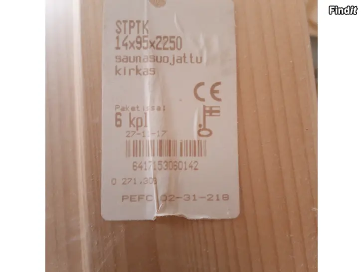 Sauna suojattu kirkas paneeli 1 pkt 14*95*2250 mm, 6 kpl paketissa.