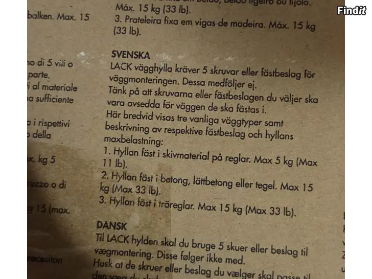 Säljes oanvänd lack vägghylla i björk. Hyllan är fortfarande i förpackningen och har inte blivit använd har stått orörd i flera år och verkar inte finnas i deras sortiment längre. Förpackningen är endast öppnad för att se vilken färg.