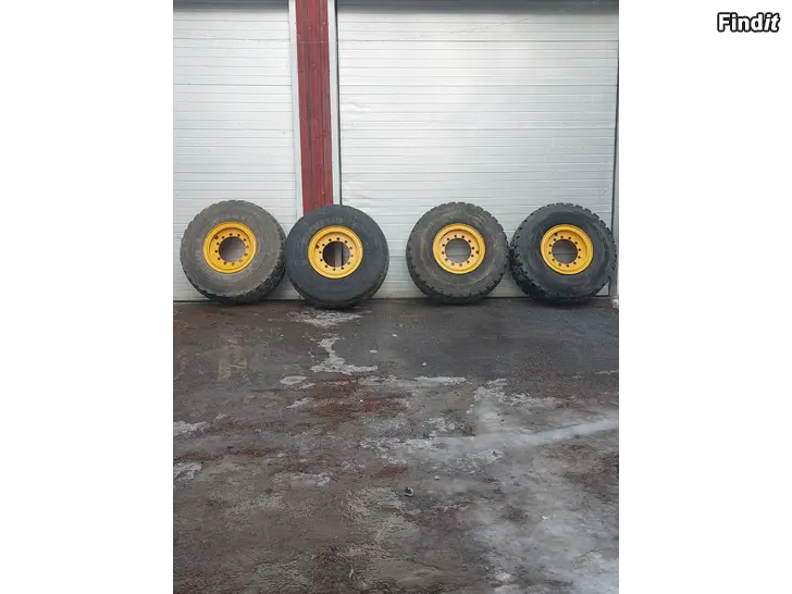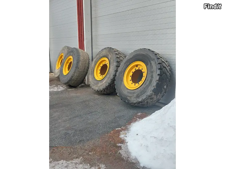Däck på fälg till hjullastare 20,5×25, däcken är på volvos fälgar, har varit under en volvo L 90 C, 4st däck och fälgar. Priset innehåller moms!