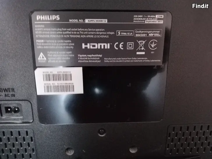 Säljer en Philips 42 tum tv. Inget kort, ingen kortläsare.
