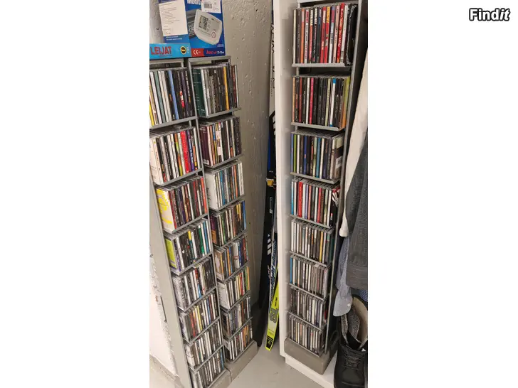 CD levyjä, paljon erilaisia jazzia, iskelmää, rokkia, heavuöya, progea, ym. Kuvassa vain pieni osa. Comboliina kirpputori hylly 161 ja 163, Vaasa