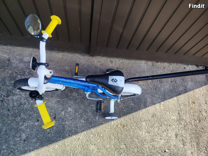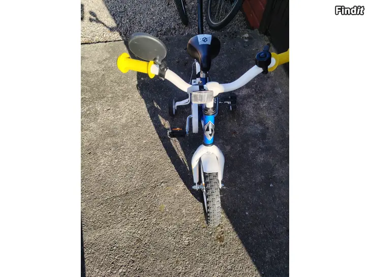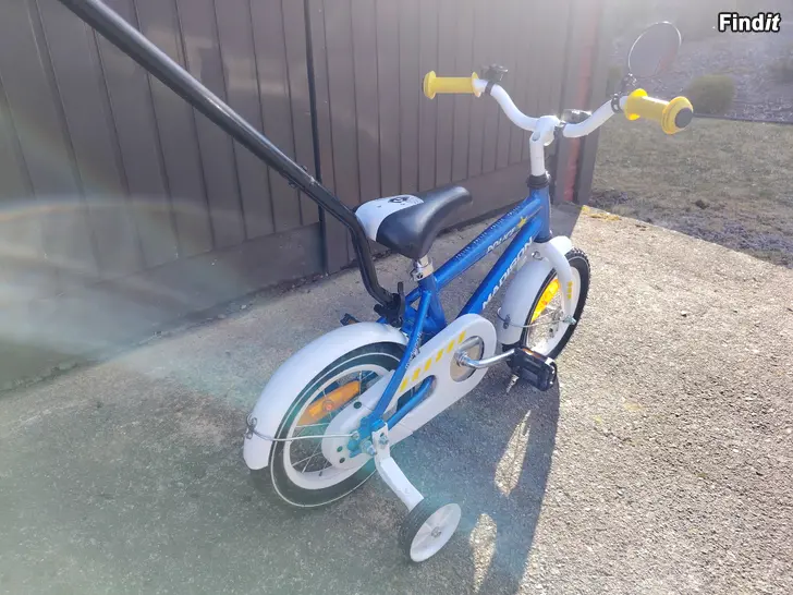 1-vaihteinen, jalkajarru, heijastimet, säädettävät apupyörat ja runkokiinnitteinen työntötanko. Pyörä on siisti ja hyvässä kunnossa.