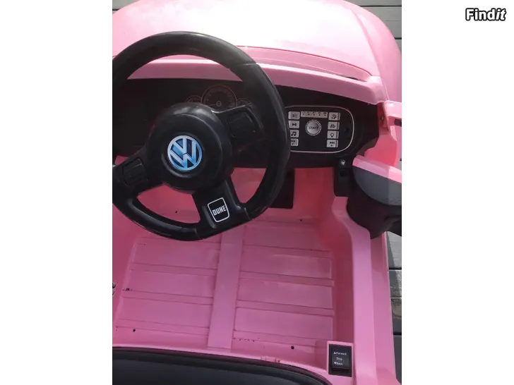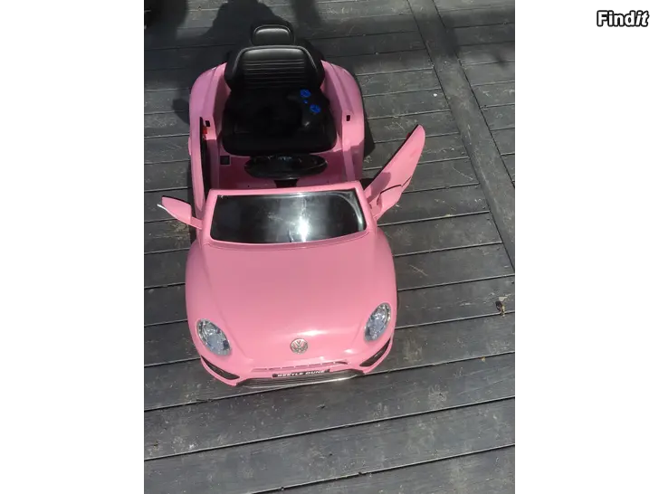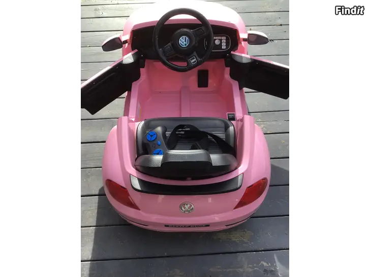 Elbil för barn. Barnet kan styra själv eller med fjärrkontroll. Bilen har fungerande radio. Batteriet är 2 år.