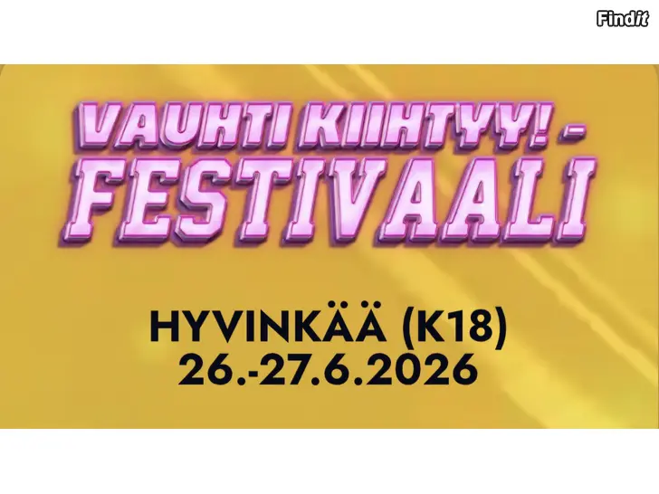 Myydään 1 kpl 2 PV kaverilippu VAUHTI KIIHTYY -festivaaliin Hyvinkään 26-27.6. 2026