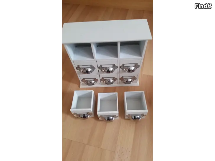 - 4 Living pieni valkoinen puulokerikko 9 laatikkoa -hinta 15e