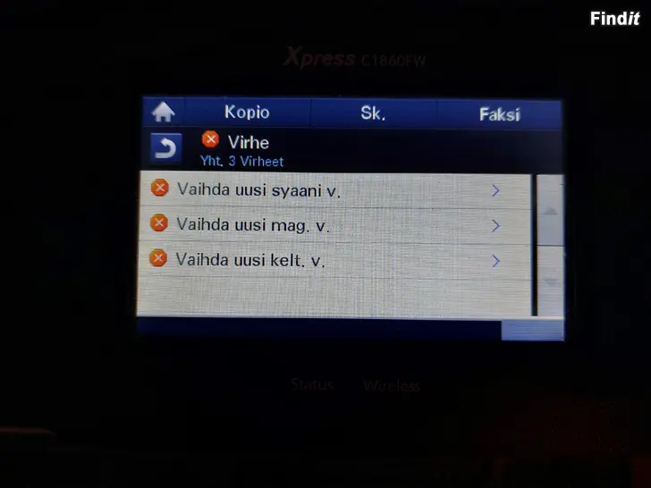 Myydään Samsung SL-C1860FW värillinen monitoimitulostin + uusi musta kasetti