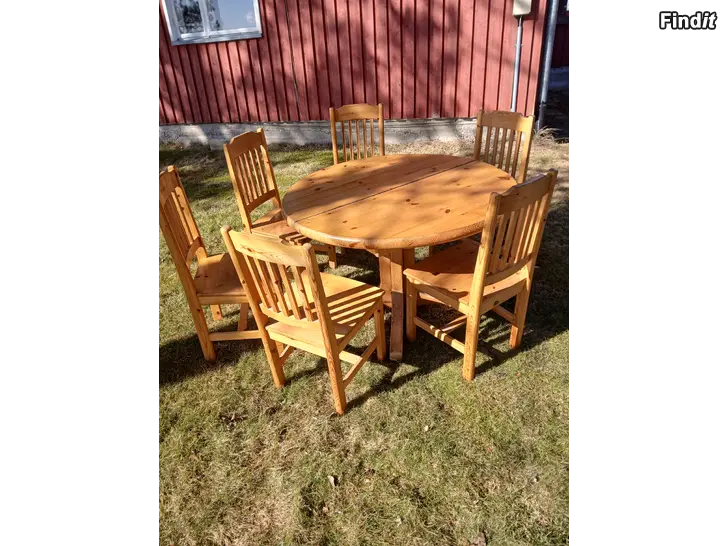Säljes köksbord + 6 stolar. Diameter 1,20