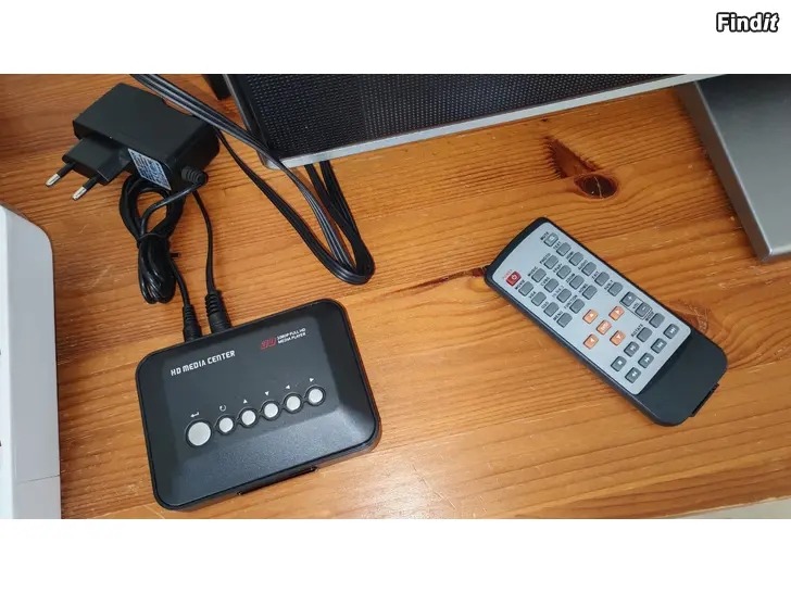 HD Mediacenter eli pieni boksi joka toistaa videoita, ääntä ja kuvia. Laitteessa on HDMI -liitin mutta mukana on vain RCA AV kuva/äänikaapeli.