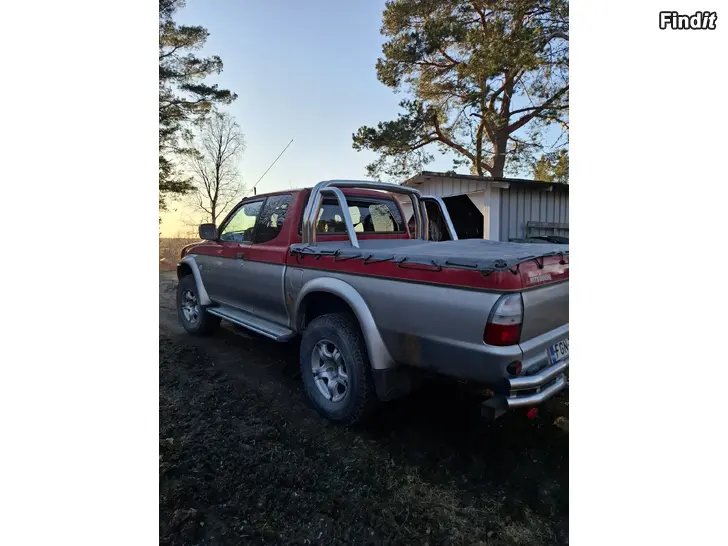 Jag säljer en Mitsubishi L200, 2004, i gott skick för sin ålder, rost har uppstått på vissa ställen men ramen är intakt. Nästa besiktning är 2026-09-09. Det finns en misstanke om att bränsletanken läcker, eller kanske något bränslerör. Fyrhjulsdriften fungerar bra. En kraftfull bil för svåra förhållanden!