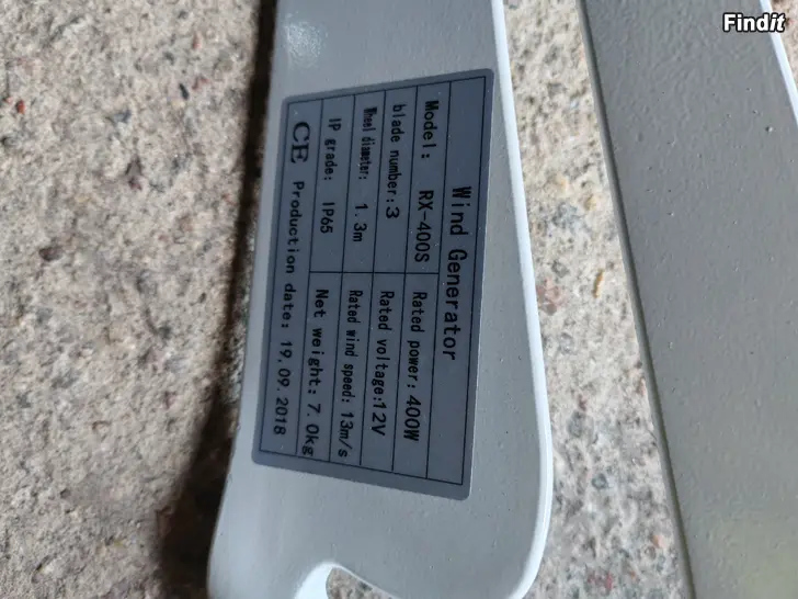 Uusi tuulimylly 12v400w on vuodelta 2018, mutta ei ole koskaan ollut käytössä, säädin tulee mukaan. Även på svenska