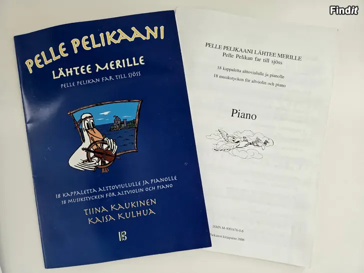 Pelle Pelikaani lähtee merille. 18 kappaletta alttoviululle ja pianolle. Löytyy Sepänkylästä/Mustasaaresta tai Vaasasta.