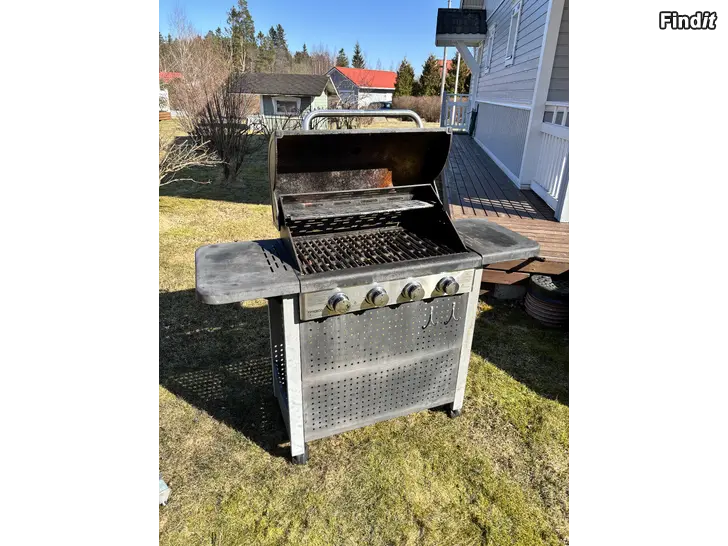 Kuvien mukainen kaasugrilli, toimii, grillattu viimeksi viikko sitten, ostettiin uusi ja tämän saa noutaa tarvitsevalle, menee mainiosti vaikka jonnekin reenikämppään, huoltohalliin tms.