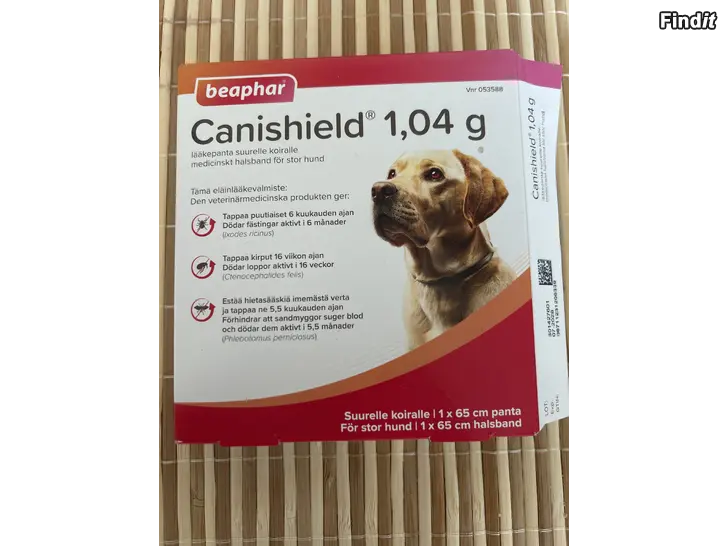 Säljes ett fästinghalsband för ”stor hund” upp till 65cm i halsomkrets. Halsbandet köpt på Apoteket i början av April.