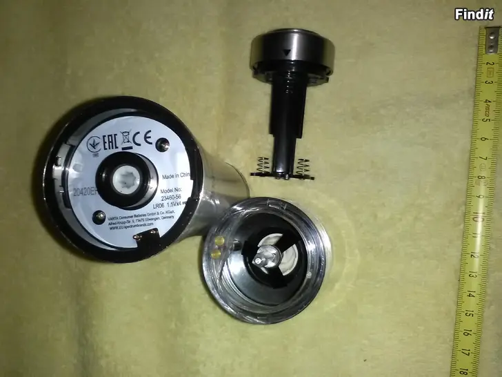 -Keraaminen koneisto, säädettävissä hienolle tai karkealle jauhatukselle, valaistu pohja, harjattua ruostumatonta terästä. Toimii 4 x AA-paristolla. ns perus sormiparistot.