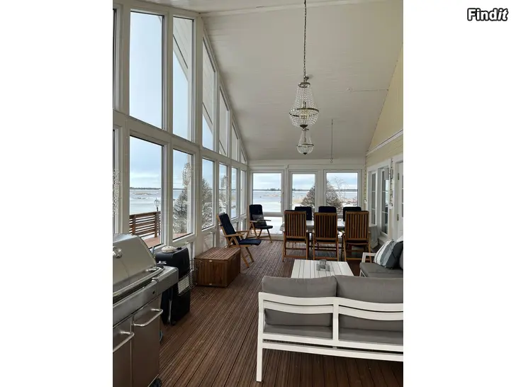 • Suuri lasitettu terassi, jossa pöytä kahdeksalle ja kulmasohva