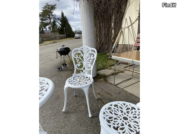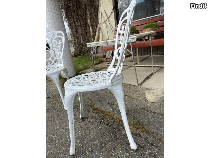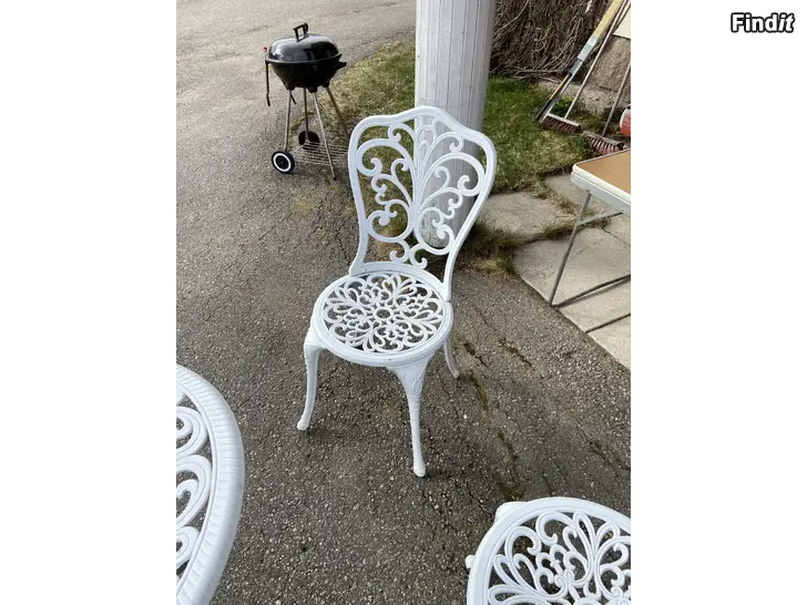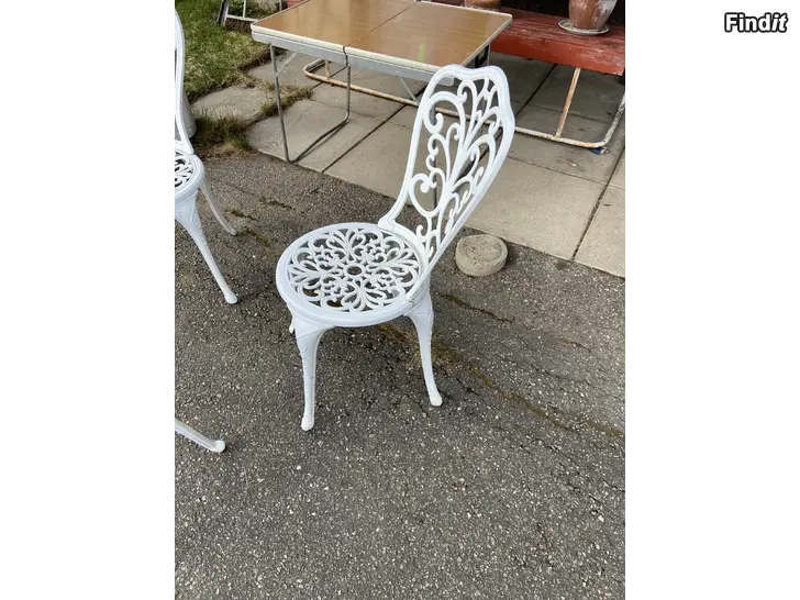 Metalliset puutarha pöytä ja kaksi tuolia ! Hyvä kuntoiset ja sään kestävät !