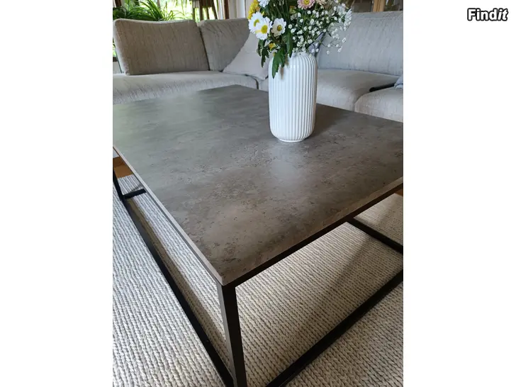 Sohvapöytä koko75x115 cm ,korkeus 45cm,betoninvärinen kansi,jalat mustaa metallia,hyväkuntoinen