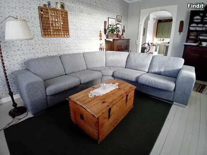 268 x 268cm nytvättade kuddar. Soffan hel.Djurhushåll. Köpt begagnad, men tyvärr för stor för oss.