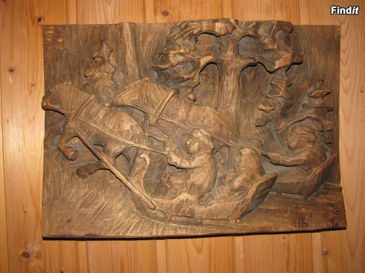 Myydään vanha puureliefi Eero Aittosen tekemä