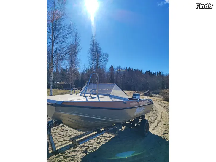 Säljes Buster R vindrutebåt med Yamaha 30 hk snurra. Bra skick. Hemmabyggd båtkärr följer med