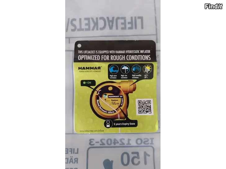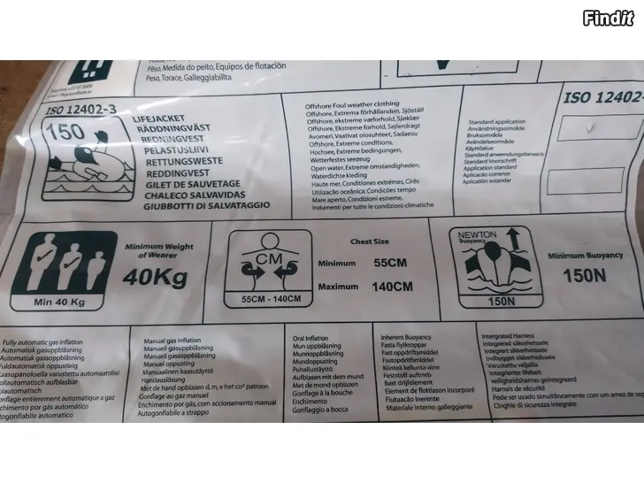 Passar personer mellan 40-150kg. Tål regn och fukt , patron byte vart 5:e år. 2 fulla båtsäsonger kvar på dessa. Extremt trygg och säker väst. Normalt butikspris 159€ . Dessa säljes bort för 70€/st.