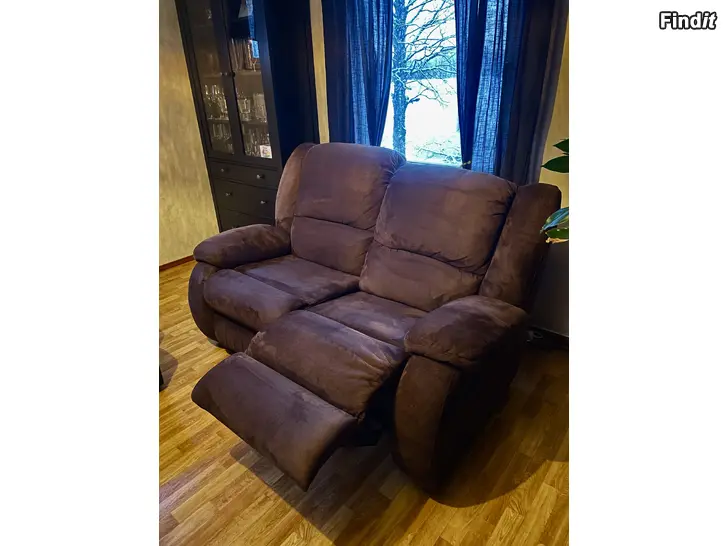 Sparsamt använd tvåsits mekanismsoffa, sammetstyget är hel samt mekanismen fungerar felfritt.