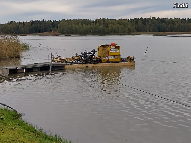 Ruoppaus jäältä ja siirto tarvittaessa dumpperilla, ruoppaukset imuruoppaamalla mahdollista pumpata muta jopa 200-300m päähän, 2 konetta imuruopaukseen Vesimestari isompiin töihin sekä pienempi mm. mökkiranta ... Vesimestarilla voidaan tehdä myös kaivikone työ , lisäksi pienempi kaivikone lautalla. Myös kaivuu rannalta käsin ja tarvittaessa massojen siirto pois dumpperiliia Hinta alkaen 150e+alv /h