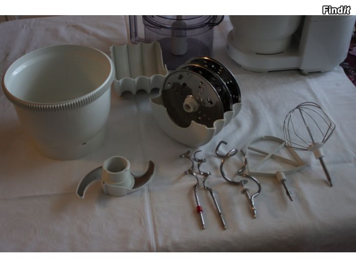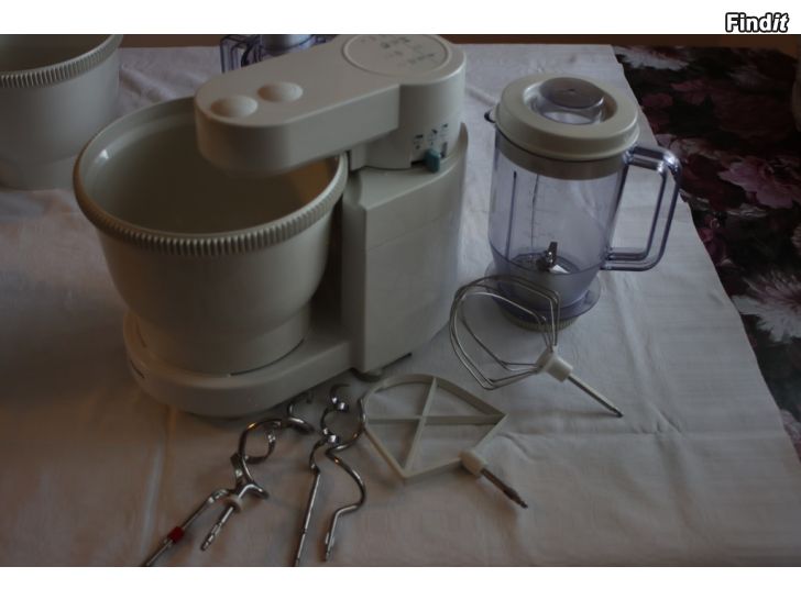 Tehosekoitin, 4 erilaista raastinterää, vispilät, taikinakoukut jne
